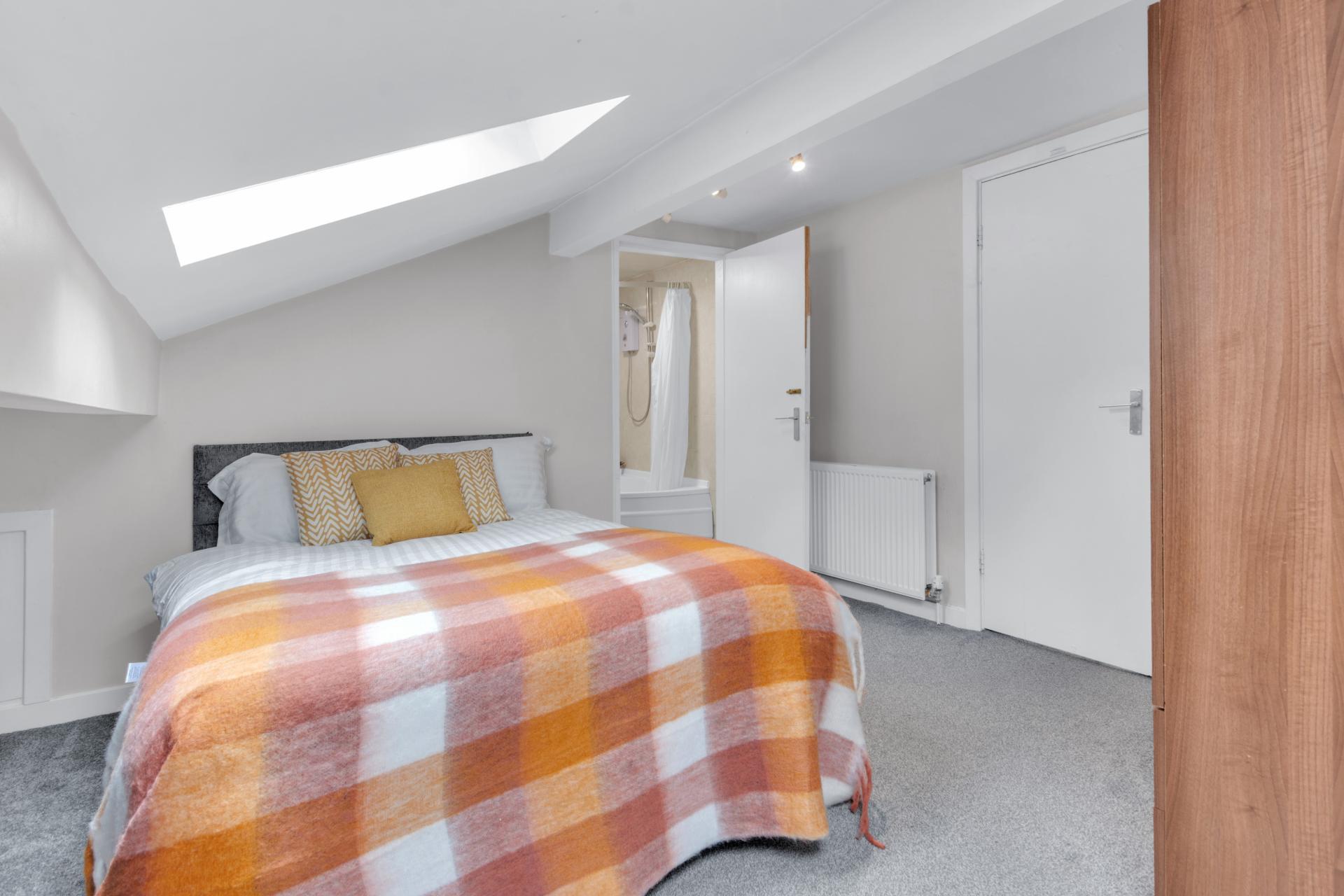 Luxury flat which has been newly re-decorated throughout, in a leafy area overlooking Kirkstall Valley. Close to parks and tennis courts. The flat is situated on the second floor of the property and is double glazed and centrally heated. Spacious living area with laminated wood floor and open plan contemporary fitted kitchen incorporating washing machine and dishwasher. Large double bedroom. Lots of character with sloping ceilings leading through to fully tiled ensuite with enormous corner bath and shower. ***Central heating included in rent***Ideal for students & professionals!
