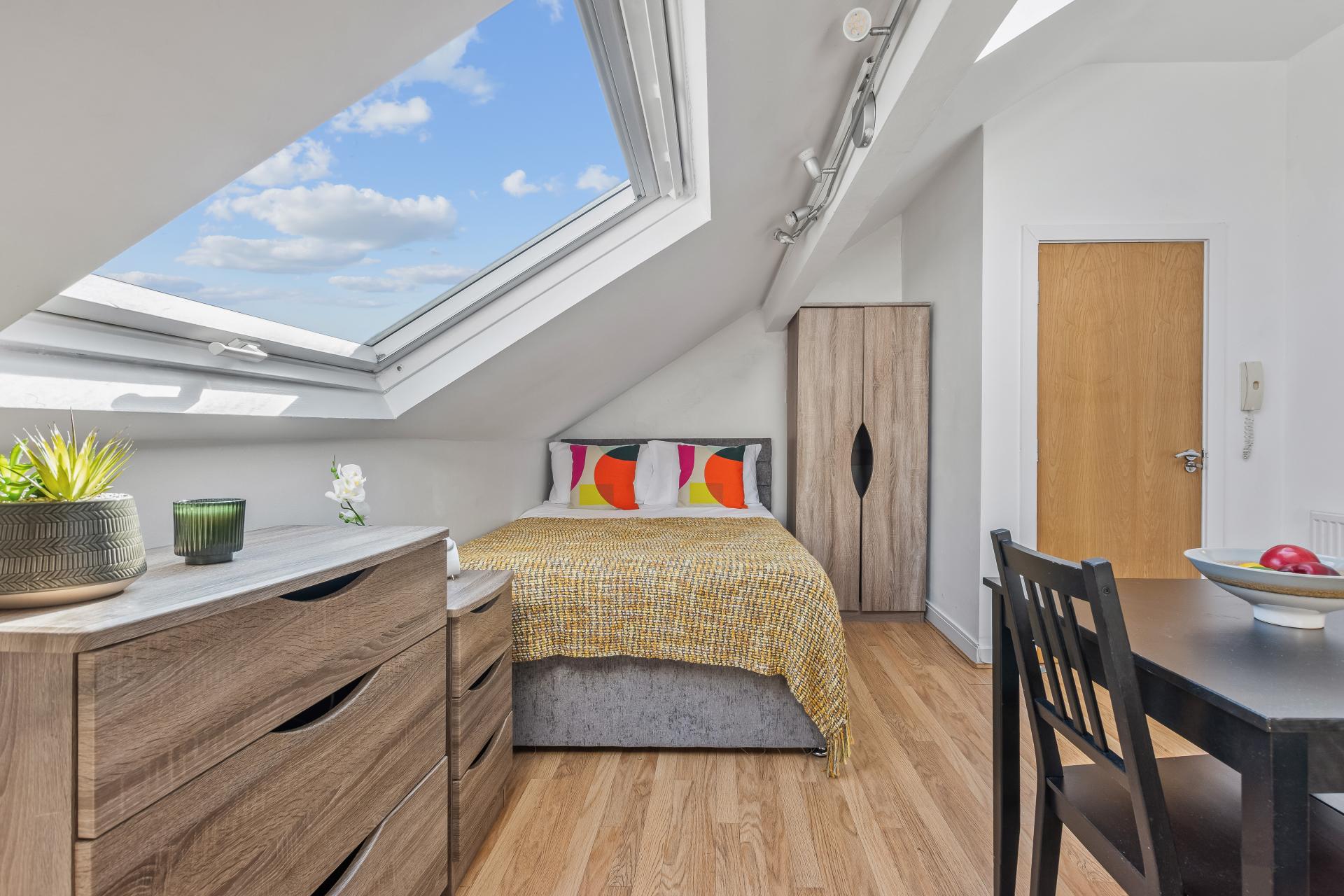 Rent includes gas central heating*** Studio apartment in the quiet backwater of Vinery Road. This is an interesting and characterful loft studio with sloping ceilings. The lounge with laminate flooring is furnished with a double bed, wardrobe and contemporary settee. Access off the lounge to a newly fitted kitchen with a range of beech/maple effect wall and base units, a washing machine, fridge freezer and oven and hob. A fully tiled shower room with electric shower W.C and hand wash basin. The apartment is decorated and carpeted to the highest standard to create a relaxed home in which to live. Off street car parking, managed gardens, easy transport links to the city centre and within close proximity to the Vue Cinema complex and Morrisons shopping centre.Ideal for both students & professionals!