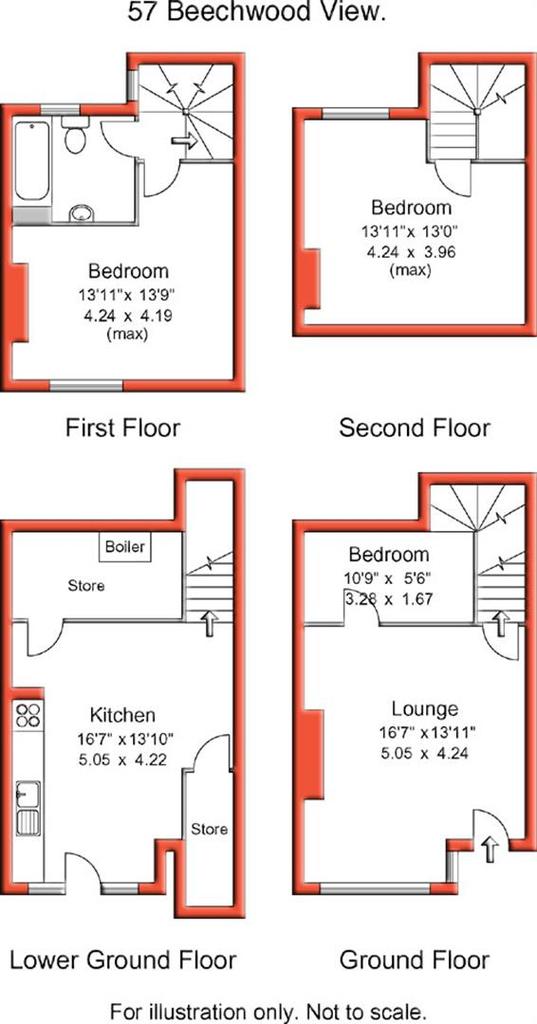 Each of the three bedrooms is located on its own floor, providing privacy and comfort, and each benefits from its own en-suite bathroom, built-in wardrobe, double bed, desk, and chair. There’s also a convenient guest W.C. on the first floor.