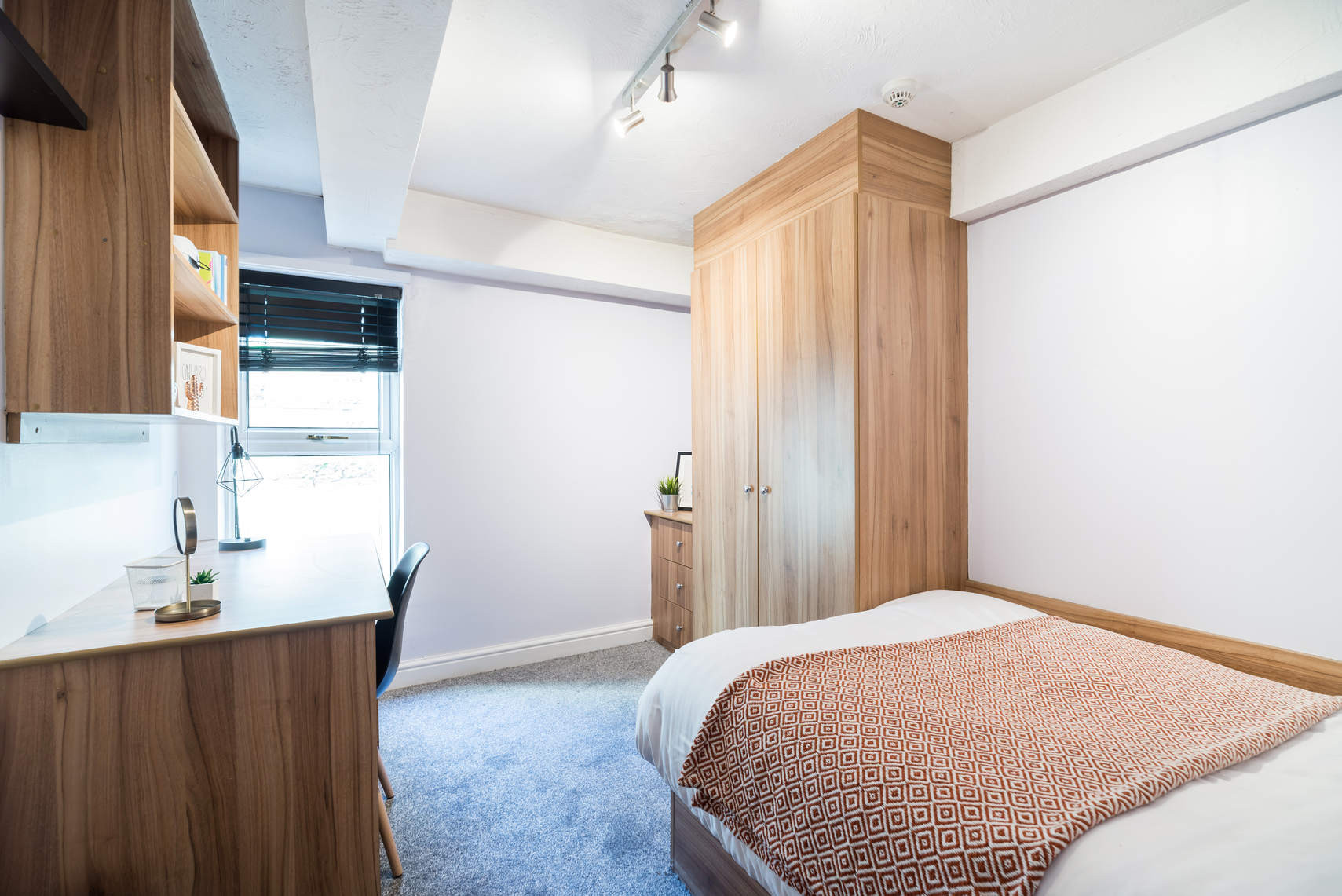 Converted garden flat situated conveniently close to the city-centre and the universities making it an obvious choice for students. Appointed to a good standard including a large laminate floored living area leading through to a separate fully fitted kitchen. Fully tiled bathroom with shower and bath. All bedrooms have double bed, wardrobe, bookshelf, desk and chair. Central heating, double glazed, fire and security alarmed.